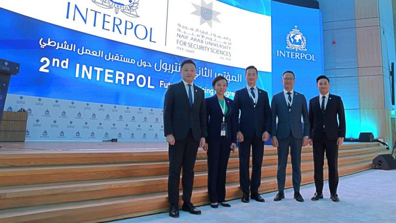 香港警務處高級助理處長、刑事及保安處處長陳東率領香港警務處代表團,於10月13至14日出席在沙地阿拉伯首都利雅德舉行的第二屆國際刑警未來警政大會。本次會議是國際刑警組織重要的國際會議,成員國的高級警務人員代表在一年一度的會議中,共同探討未來警政在快速科技發展下的趨勢,協助執法機構識別潛在變化,並制訂有效應對策略。今年會議匯聚來自33個國家及地區共62名代表出席,會上聚焦三個議題,包括未來社會警政、新型警務模式與角色和能力建構,以及維護全球治安的前瞻性領導力。