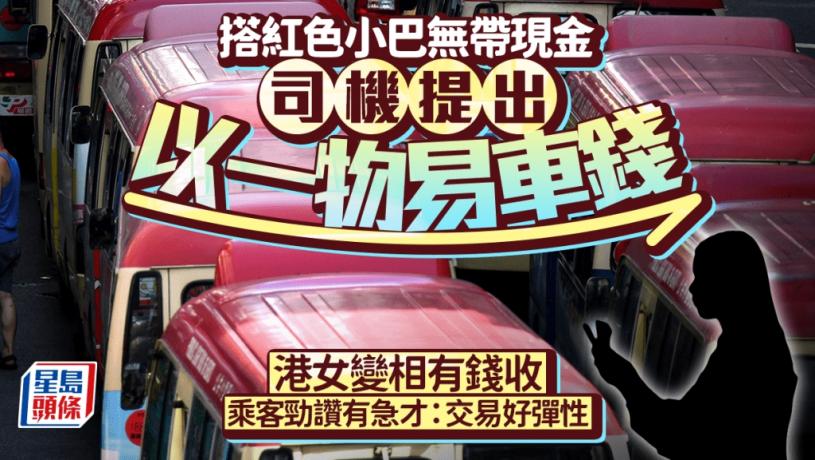 有乘客搭紅色小巴由西貢出銅鑼灣時,由於無帶現金在身,司機有急才地提出以一物易車資,令女乘客變相有錢收。疑似女事主事後驚喜在網上留言,親述事件細節。詳情見下圖及下文: