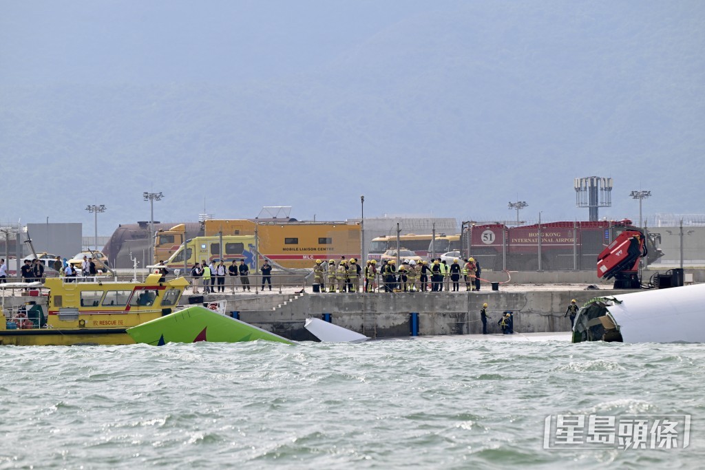 消防處代表指出,於今凌晨3時55分,接獲事發確實位置,消防人員兩分鐘後到達,發現機身斷開兩截,4名機組人員站在打開機艙門的旁邊,等待拯救。人員協助他們由逃生滑梯離開。其後進入涉事貨機的機艙,確保無人被困。