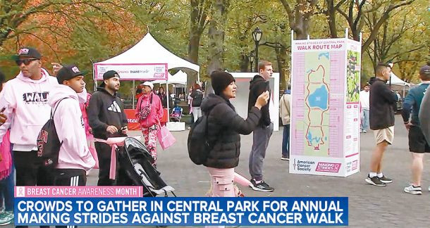 「抗擊乳癌大步走」全國逾150個社區同日舉辦步行活動。 CBS紐約截圖