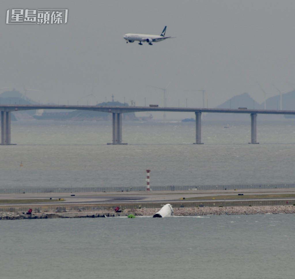 杜拜抵港貨機降落期間衝出跑道 地勤車墮海 車上兩人被救起後不治