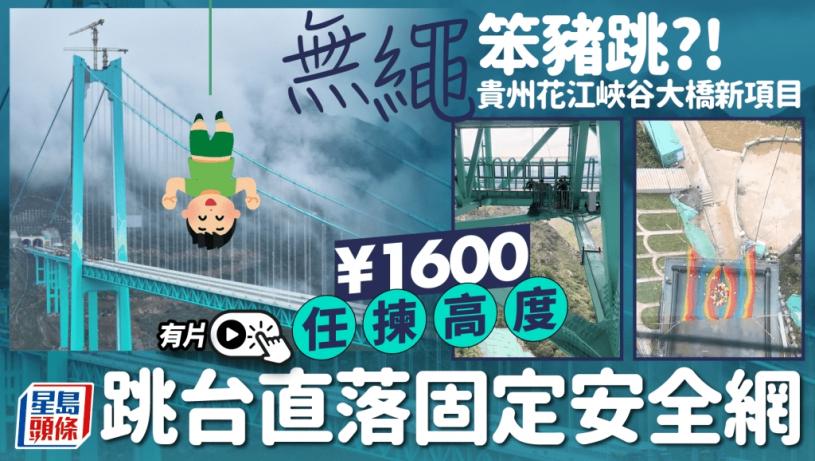 貴州花江峽谷大橋近日測試無繩笨豬跳項目引發網絡熱議,該創新項目讓體驗者不繫繩索直接躍入安全網,預計本月22日後正式開放,成為繼傳統笨豬跳後該橋又一極限運動新選擇。