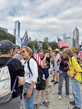 芝加哥的示威活動是18日全美各地舉行的眾多「不要國王日」抗議活動之一。根據組織頁面顯示,這場位於市中心的集會旨在向特朗普總統及其政府表明,他們堅決反對「針對我們的鄰居、我們的社區和我們的民主的非法和不必要的攻擊」。本報記者梁敏育芝加哥報道
