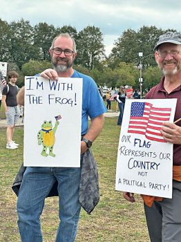 現場遇到一名從伊州南部搭火車過來參加示威的居民森姆,他稱他是第二次參加「不要國王日」的示威活動,因為他不希望看到特朗普政府大規模驅逐非法移民。他表示他認識不少「非法移民」朋友,認為他們都很勤勞的工作、也從不惹事生非,因此聯邦政府不應該一刀切的政策驅逐非法移民。但他也表示,對於從事非法行動、犯罪的人,政府是應該嚴懲他們的。