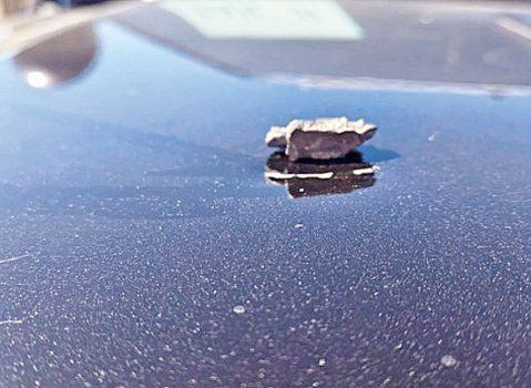 加州公路巡警提交事故報告稱,一名巡警聽見鵝卵石般的聲響落在摩托警車上,車體沒有損壞,但在附近發現一塊一吋乘以0.5吋大小的彈片。