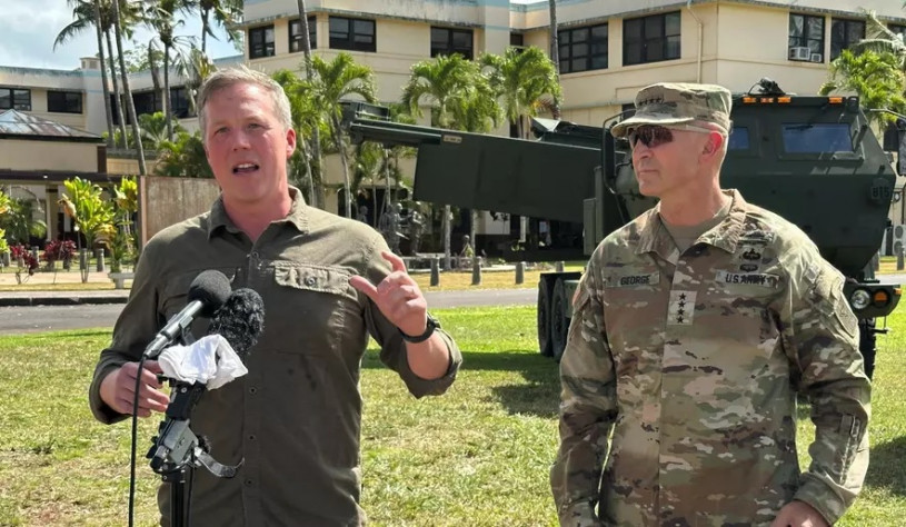 美國陸軍部長德里斯科爾(左)向記者發表講話。美聯社