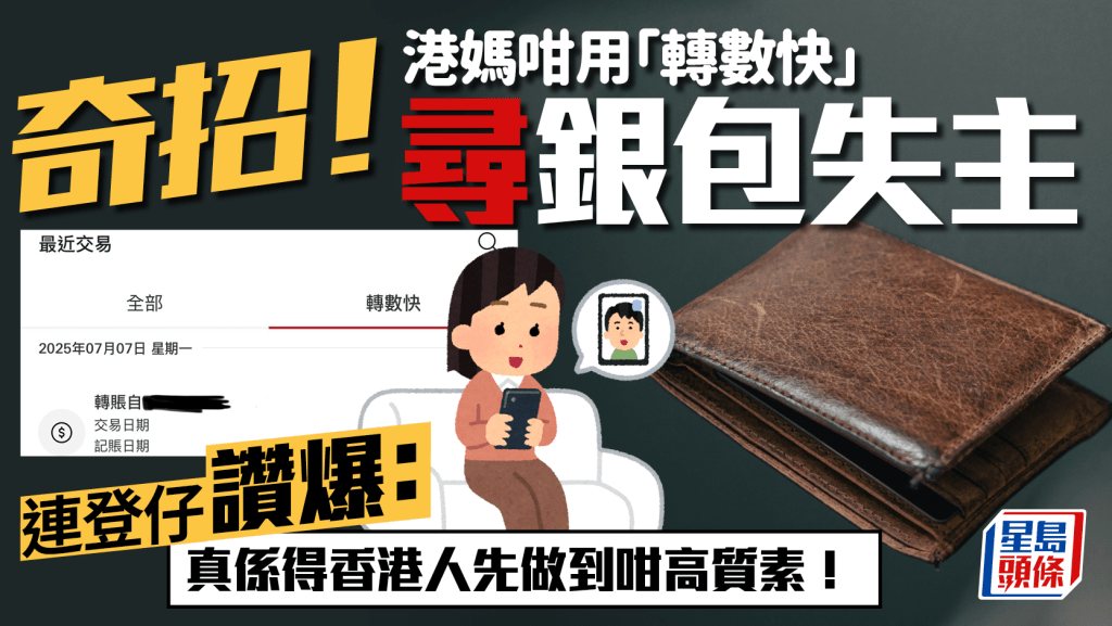 同場加映:真創意!港媽巧用「轉數快」奇招尋銀包失主 連登仔讚爆:真係得香港人先做到咁高質素!↓↓↓↓