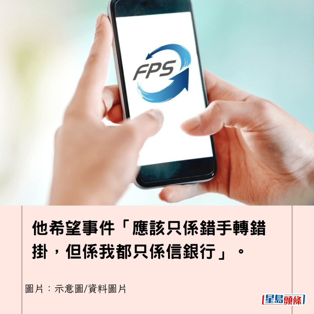 他希望事件「應該只係錯手轉錯掛,但係我都只係信銀行」。