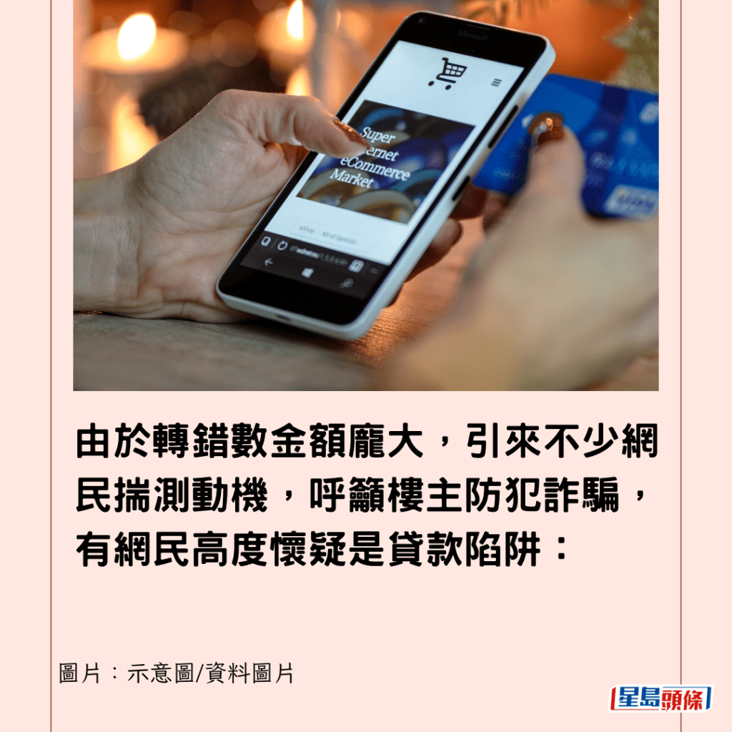 由於轉錯數金額龐大,引來不少網民揣測動機,呼籲樓主防犯詐騙,有網民高度懷疑是貸款陷阱:「嗰啲唔係轉賬!係有人以你名義(申請的)貸款,你轉返畀佢,就佢袋咗你啲貸款走,之後銀行追你!」該網民指早前TVB《東張西望》亦有報導過有類似手法。