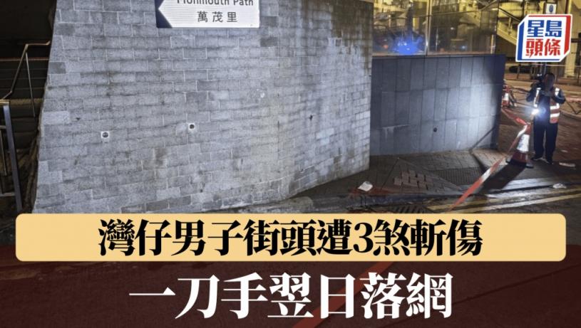 灣仔昨日(23日)凌晨發生斬人血案,一名男子遭三名持刀兇徒伏擊,雙腳中刀倒地,重創淌血。警方經一日追查後,於大埔區拘捕一名涉案男子,案件交由反黑組跟進。