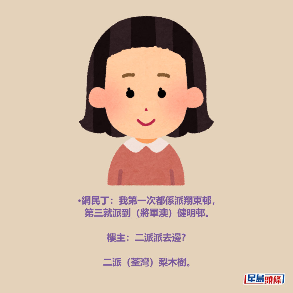 •網民丁:我第一次都係派翔東邨,第三就派到(將軍澳)健明邨。