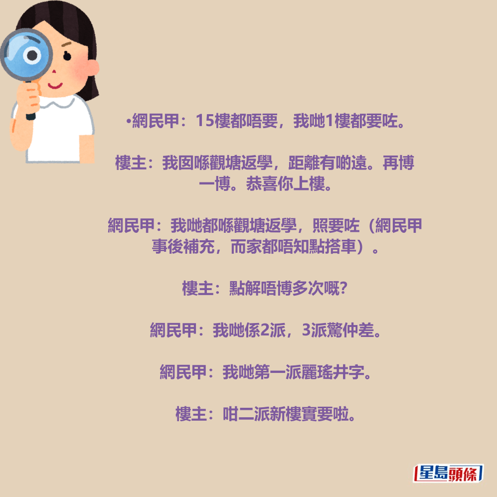 •網民甲:15樓都唔要,我哋1樓都要咗。