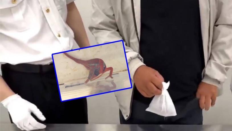 海關在男子褲袋搜出4條瀕危「變色龍」。海關發布