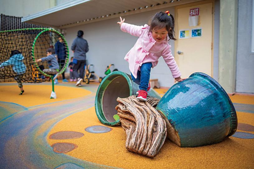 孩子們在嶄新的米慎灣中心玩樂。啟明提供