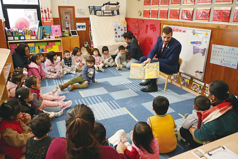 市參事李爾德與百老匯中心的孩子們參加全美讀書日活動。 啟明提供