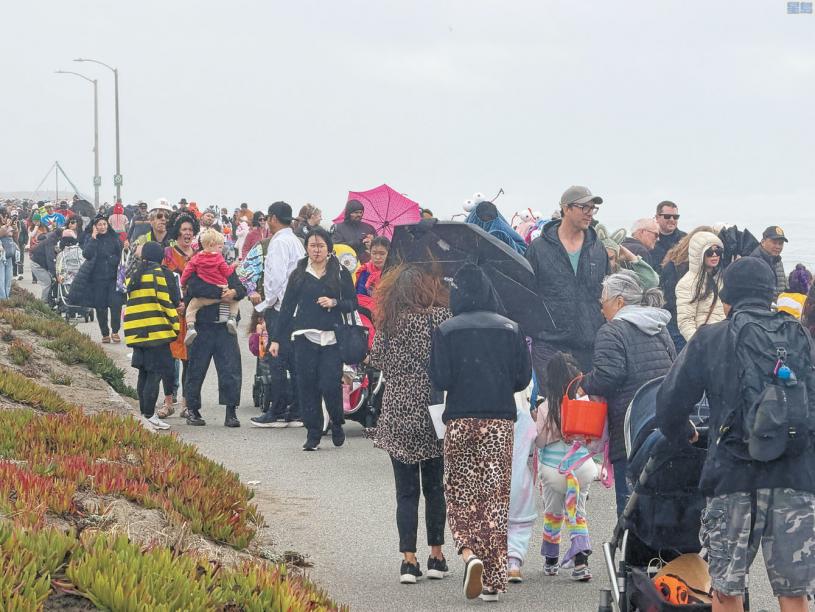 萬聖節將至,三藩市西區的「日落沙丘」(Sunset Dunes)公園「Great Hauntway」萬聖節活動吸引上千名家長與小朋友盛裝參加,午後突降暴雨導致活動提前結束,但大小朋友冒雨討糖的熱情不減。