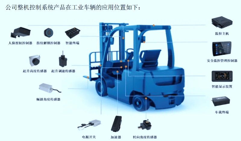 作為工業車輛上游企業,嘉晨智能的核心業務圍繞電氣控制系統產品及整體解決方案展開,主要產品分為三類:電機驅動控制系統(2024年營收佔比73.42%)、整機控制系統(2024年營收佔比26.17%)、車聯網產品及應用(2024年營收佔0.2%)。