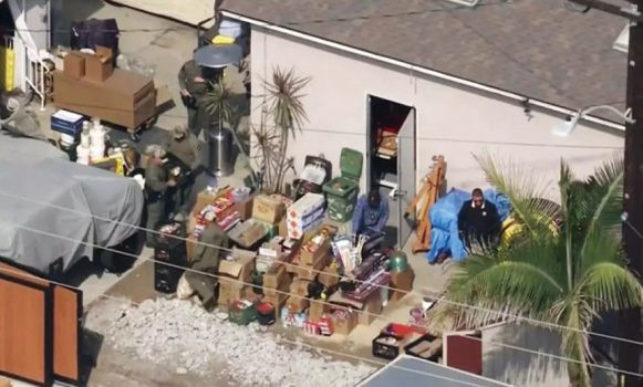 週一上午,警方突襲東洛杉磯一家非法煙火爆竹工作坊,繳獲近百磅煙火藥。KTLA