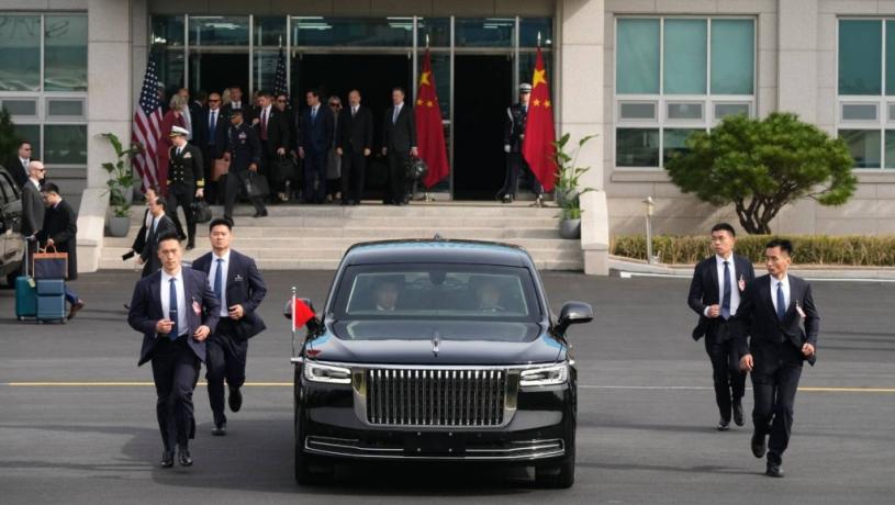 國家主席習近平今日(30)早上乘專機抵達南韓,應南韓總統李在明邀請出席亞太經合組織(APEC)第三十二次領導人非正式會議、對韓國事訪問,並在南韓釜山金海國際機場與美國總統特朗普(Donald Trump)會晤長達1個小時40分鐘。中美元首會談結束後,特朗普率先搭乘專機空軍一號返回美國;習近平則是搭專車離開釜山,驅車前往慶州。中方隨扈人員追車一幕被鏡頭拍下,引發熱議。