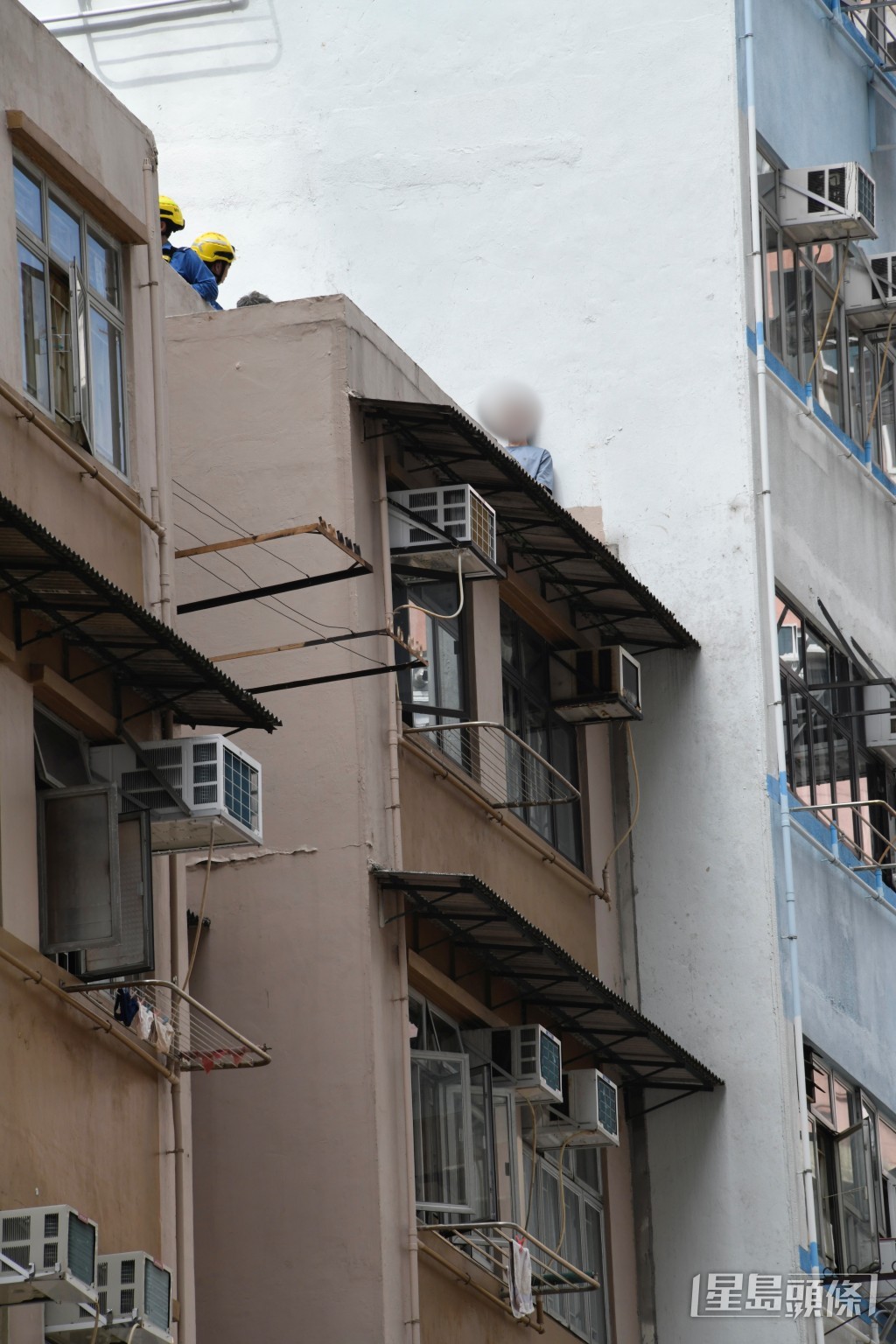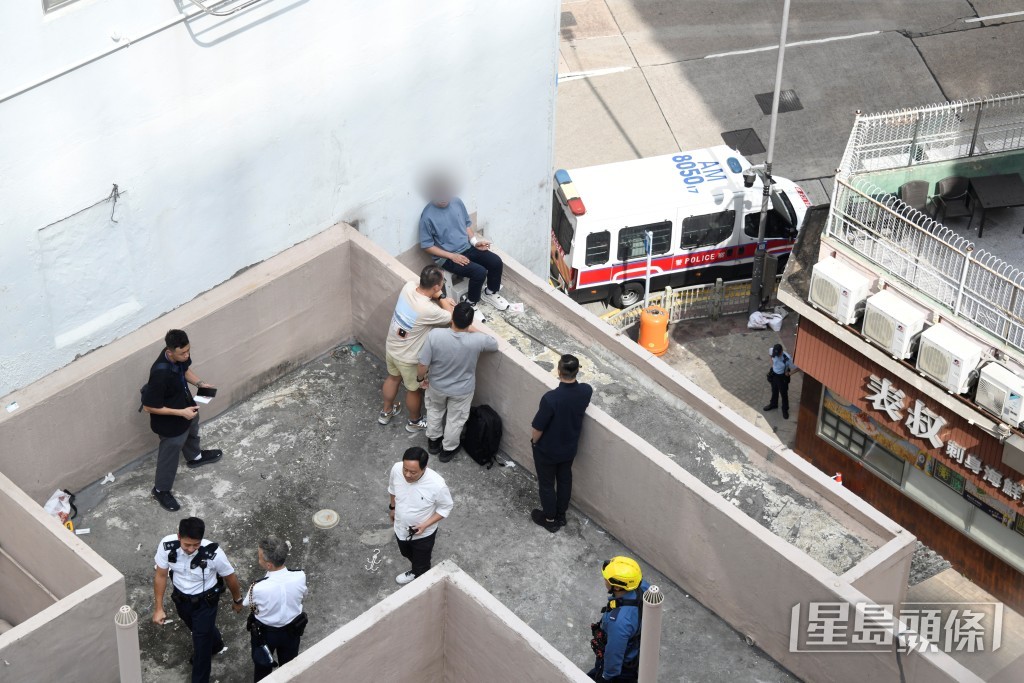 警方及消防在天台進行游說。