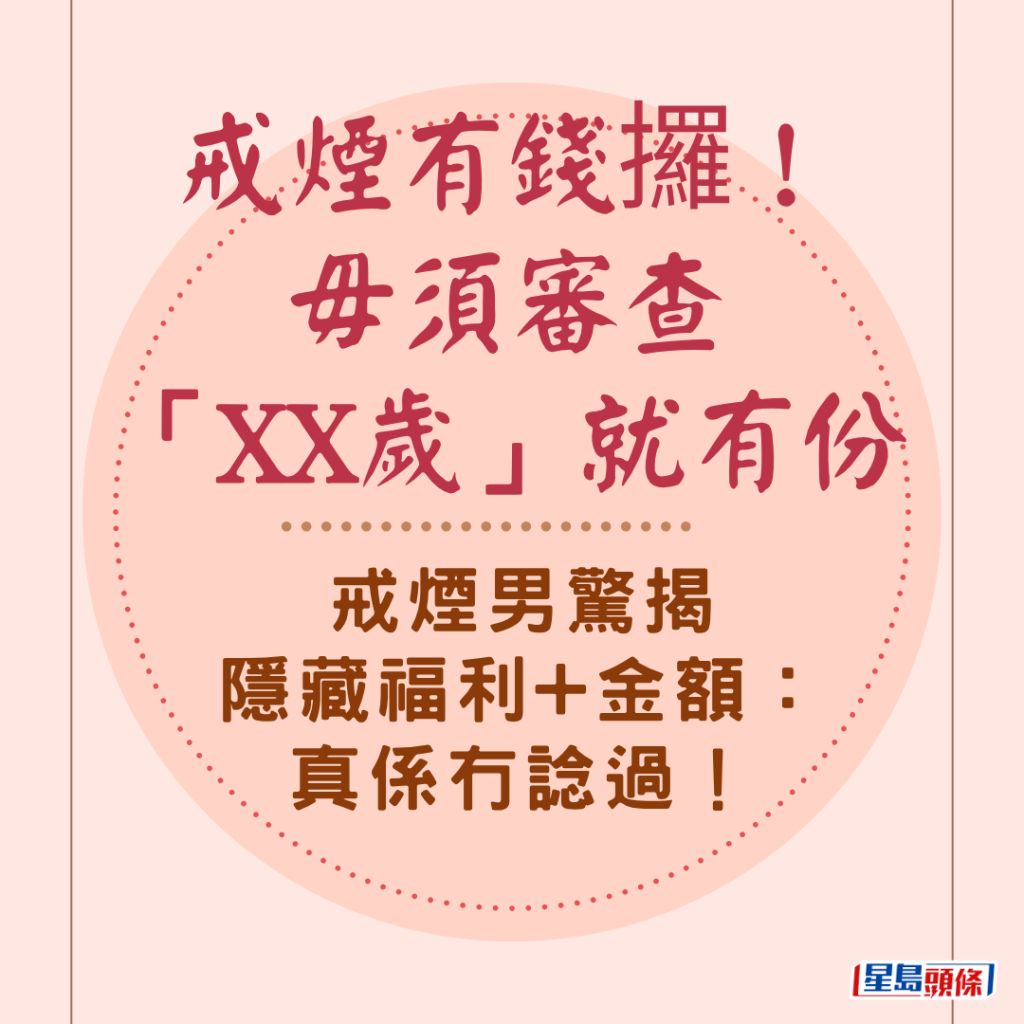 戒煙有錢攞!毋須審查「XX歲」就有份 戒煙男驚揭隱藏福利+金額:真係冇諗過!↓↓↓↓
