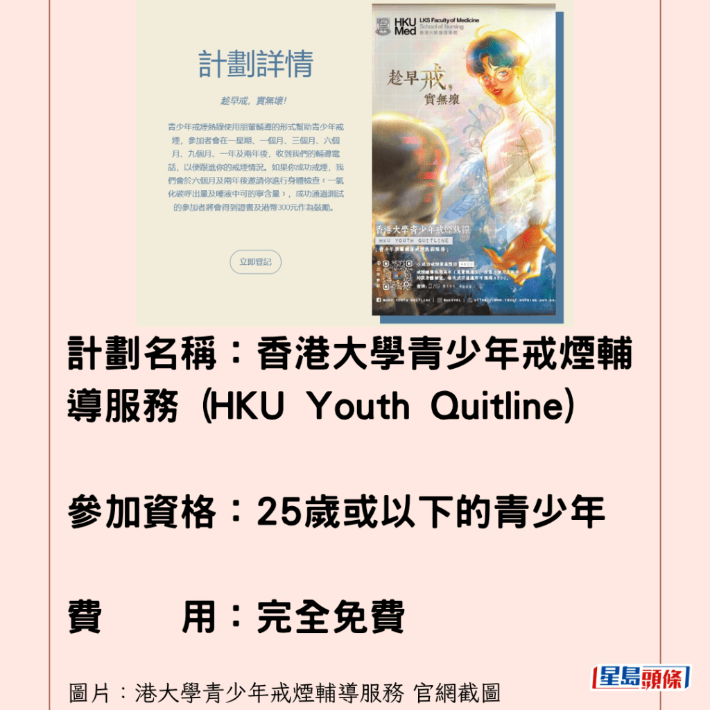 該計劃官網:https://www.yquit.nursing.hku.hk/