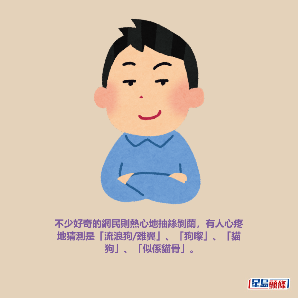 不少好奇的網民則熱心地抽絲剝繭,有人心疼地猜測是「流浪狗/雞翼」、「狗嚟」、「貓狗」、「似係貓骨」,並有人認真地指出「貓,從大腿及肩胛骨可以看出來。成貓, 是死了之後曬成的白骨」。