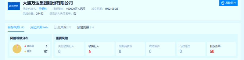 《星島》查詢天眼查數據得知,2023年至今,萬達歷史累計被執行金額超120億元,目前仍有50項股權凍結事項。