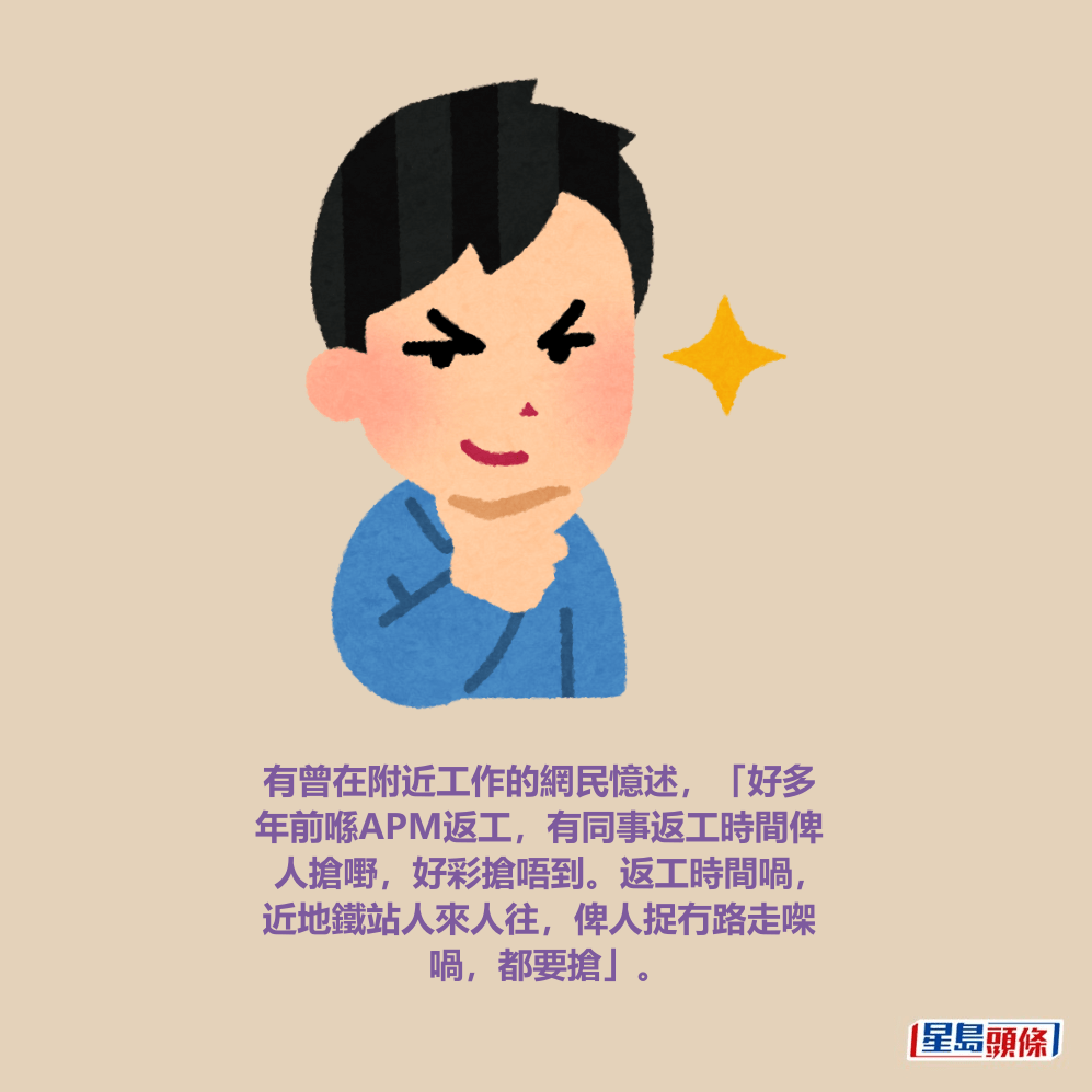 有曾在附近工作的網民憶述,「好多年前喺APM返工,有同事返工時間俾人搶嘢,好彩搶唔到。返工時間喎,近地鐵站人來人往,俾人捉冇路走㗎喎,都要搶」;有人好心提醒「周街人多地方都有人搵食,大家小心啲」。