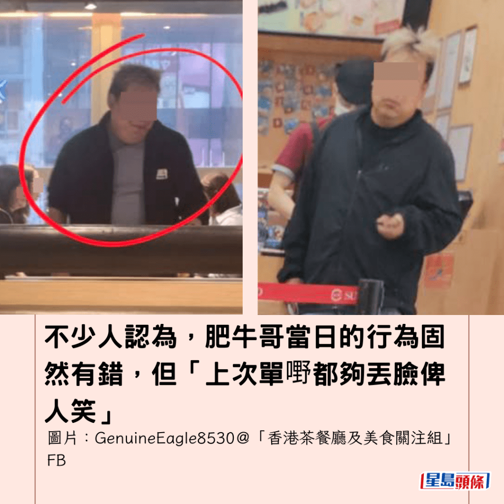 不少人認為,肥牛哥當日的行為固然有錯,但「上次單嘢都夠丟臉俾人笑」,有人從同理心出發,感嘆道:「其實佢都好慘,佢唔識街外人,但街外人個個都識佢,每一次入食店開餐都要畀人點相」。