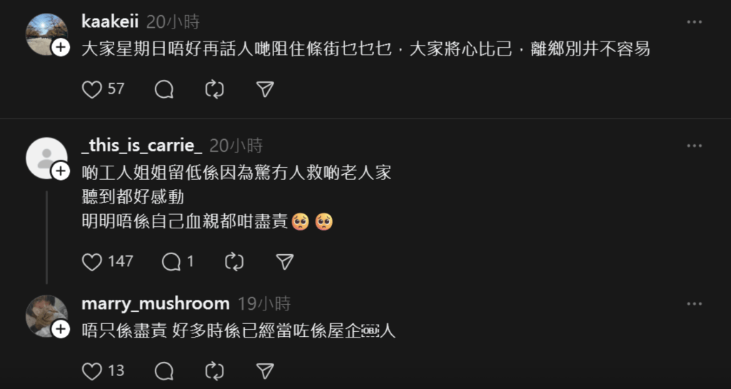 由於Rhodora獲救前,其身在菲律賓的姐姐在社交平台拍片指妹妹仍在火場,生死未卜,呼籲大家想辦法拯救愛妹,事件因而引起外傭社群及市民關注。尤其Rhodora的英勇事迹廣後,不少網民留言祝願她早日康復,並感謝她在危難中挺身保護嬰兒;亦有人呼籲僱主以後善待家事工人,珍惜她們,給予她們應有的尊重。