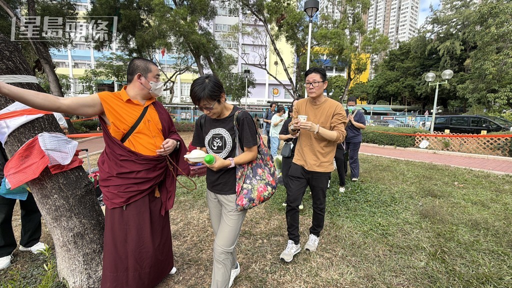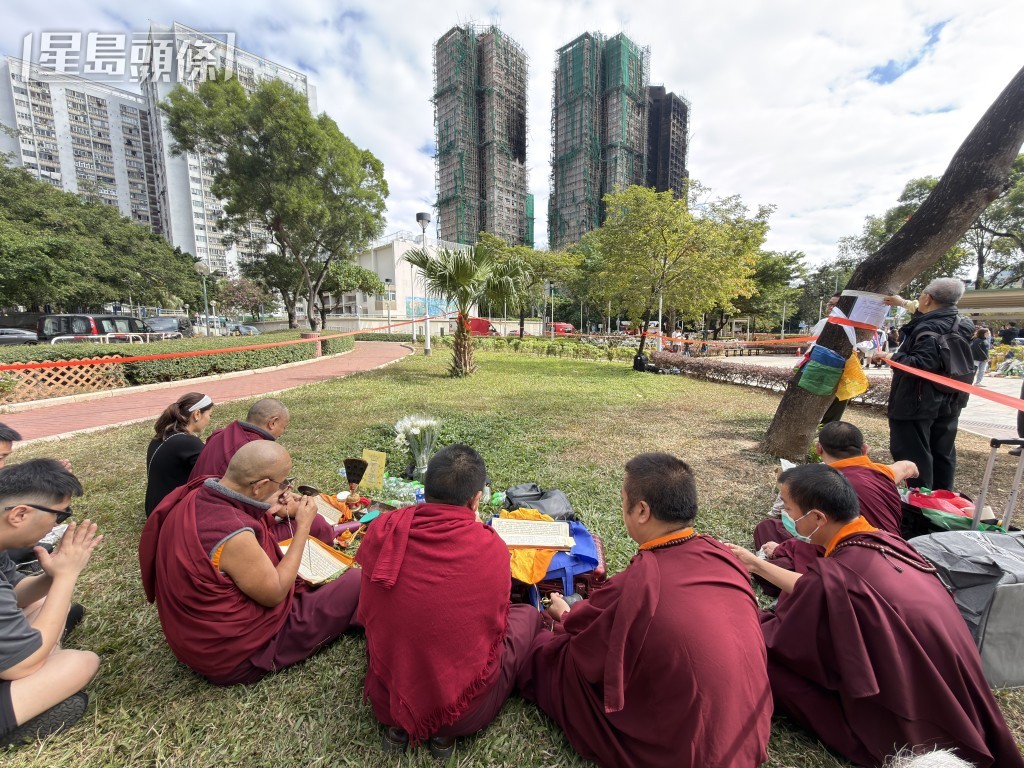 另方面,今早11時許,喇嘛團體在毗鄰的廣福休憩處,為死去的居民及寵物進行超度儀式。有十多名市民參與,他們拿著祭品,為死難者鞠躬祈福。而下午2時許開始,在廣福邨廣禮樓對開,有團體為死者進行佛教儀式的悼念及獻花活動。