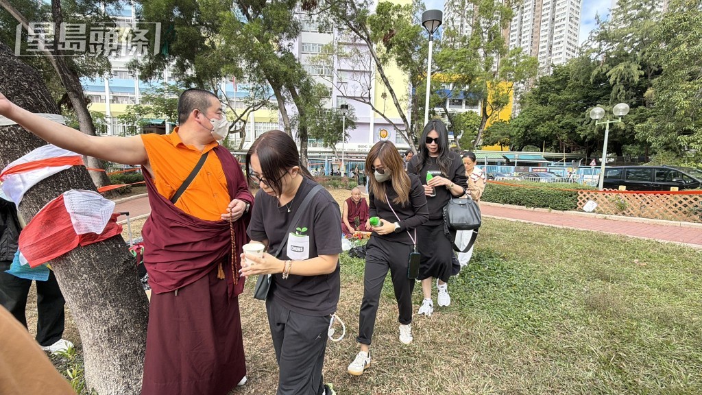 大埔宏福苑於上周三(11月26日)發生五級大火,奪去最少151人的寶貴生命,包括37歲消防員何偉豪,這場世紀火災踏入第七日,「頭七」之日,死者家屬及殉職消防員的家屬約50多人,連同約40名法師,今(2日)中午約1時到達宏福苑進行路祭,其中部分是穿著制服的消防員,他們手持白花悼念。而法師則在場打齋,眾人燒香鞠躬致祭,再排隊獻花,並將花擺放在草叢,場面傷感。