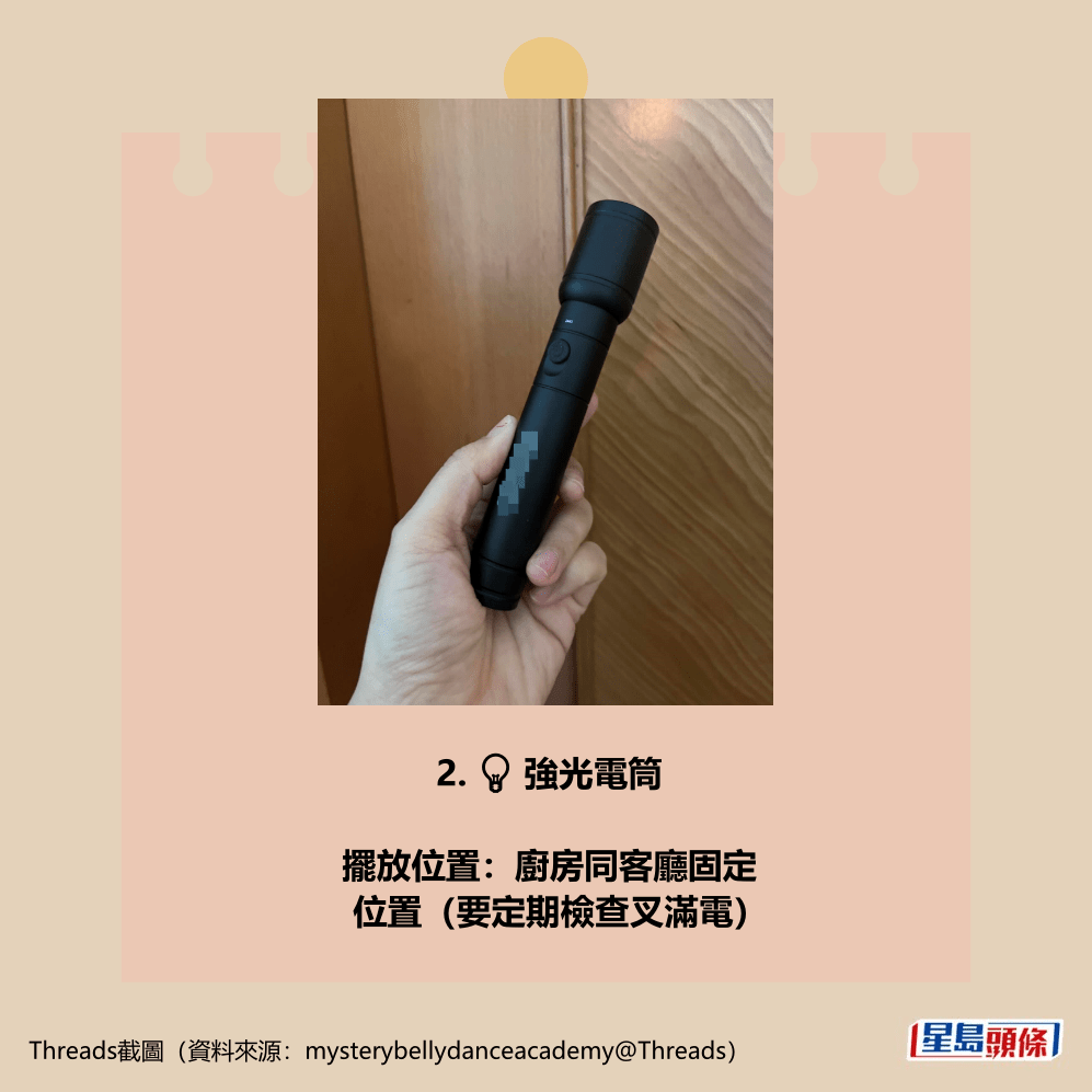 樓主續指「舊年居安思危嘅我為自己屋企同長輩屋企都添置咗一系列應急裝備,希望同大家分享我嘅清單,等大家可以一齊參考,祝願大家都平安」。