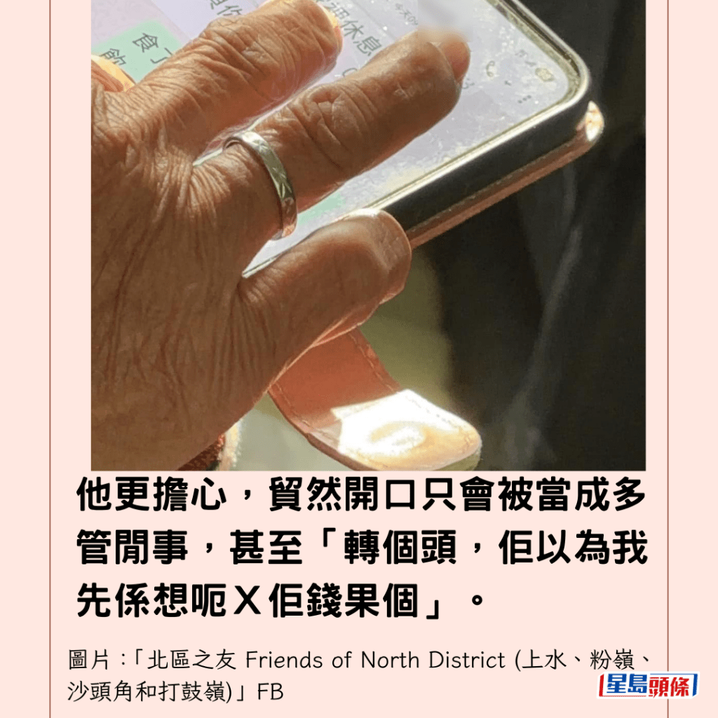 他更擔心,貿然開口只會被當成多管閒事,甚至「轉個頭,佢以為我先係想呃X佢錢果個」。