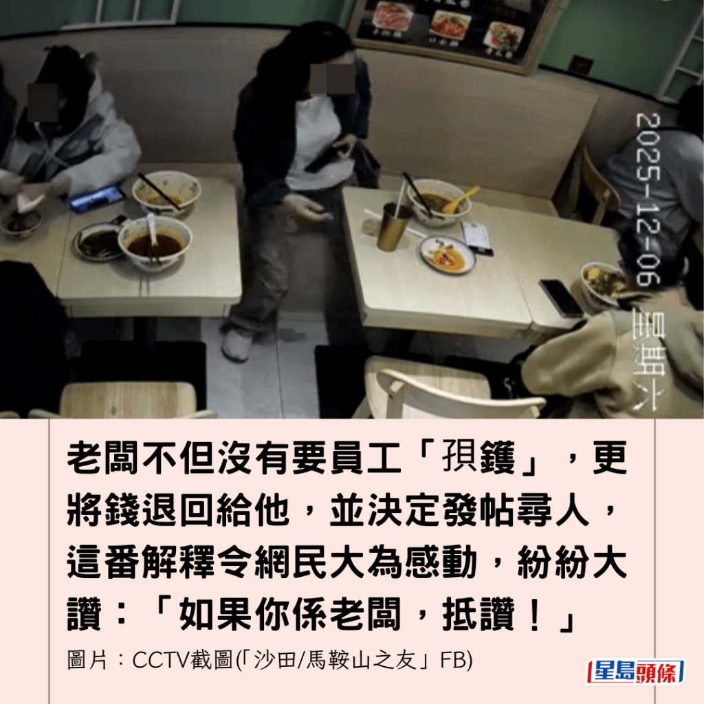 老闆不但沒有要員工「孭鑊」,更將錢退回給他,並決定發帖尋人,這番解釋令網民大為感動,紛紛大讚:「如果你係老闆,抵讚!」