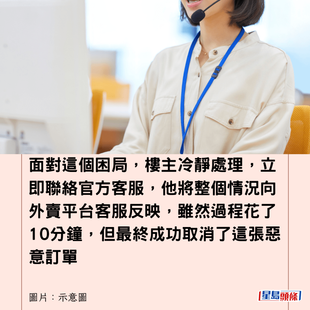 面對這個困局,樓主冷靜處理,立即聯絡官方客服,他將整個情況向外賣平台客服反映,雖然過程花了10分鐘,但最終成功取消了這張惡意訂單,他事後直斥惡作劇者「簡直浪費我時間」。