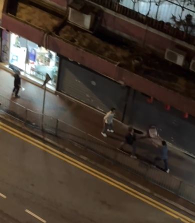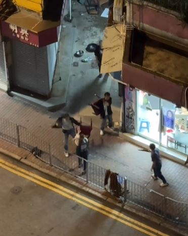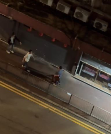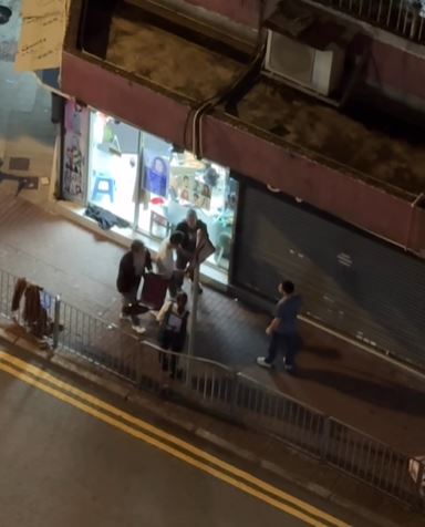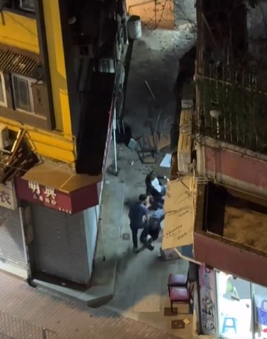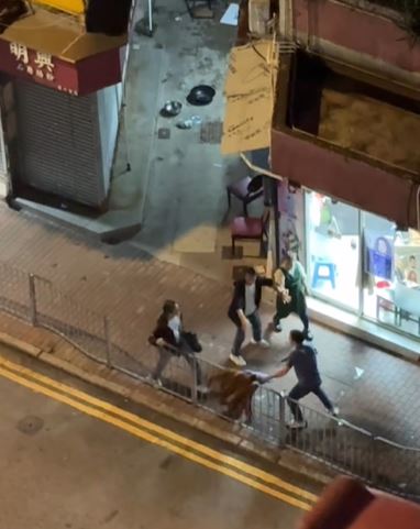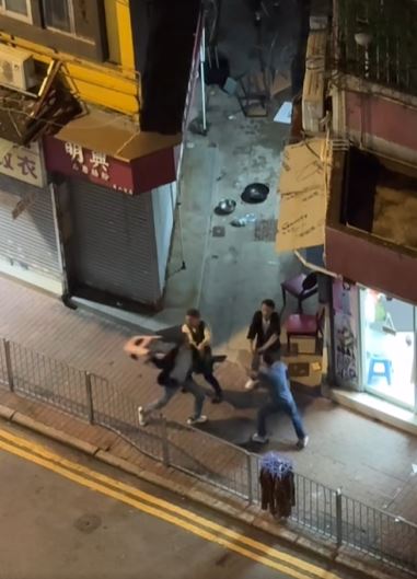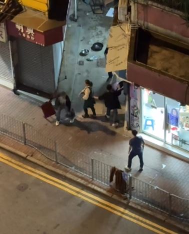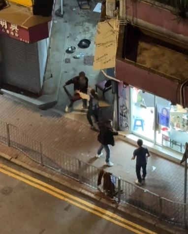其後三男發生爭執,互相推撞,被通緝男子用摺凳襲擊蕭男,其後謝男與被通緝男子繼續襲擊蕭男,張女報警求助。警方接報到場後,被通緝男子逃離現場,警方以公眾地方打鬥拘捕謝男及蕭男,兩人分別面及前臂受傷清醒送往明愛醫院治理。兩名現正保釋候查,案件交由深水埗警區刑事調查隊第二隊跟進。