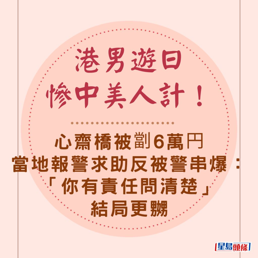 港男遊日慘中美人計!心齋橋被劏6萬円 當地報警求助反被警串爆:「你有責任問清楚」結局更嬲↓↓↓↓