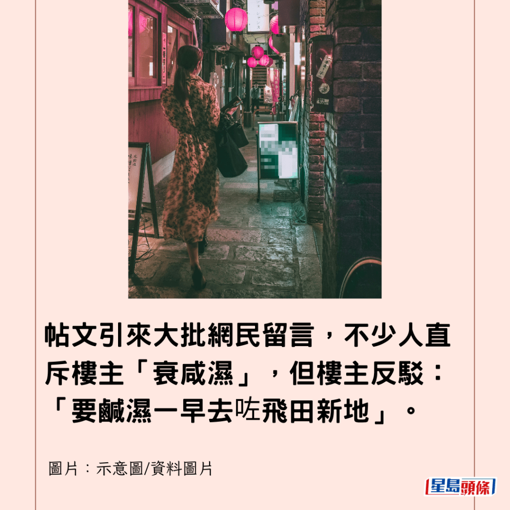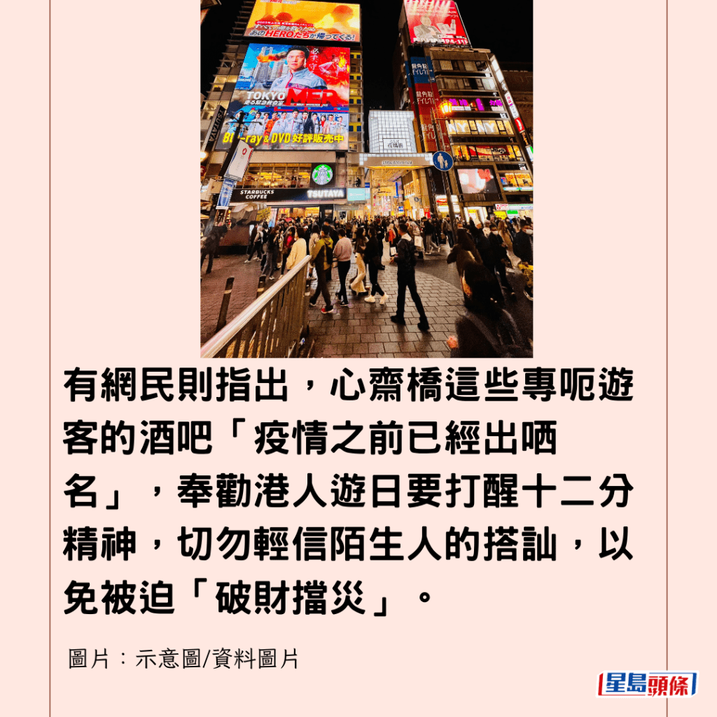 帖文引來大批網民留言,不少人直斥樓主「衰咸濕」,但樓主反駁:「要鹹濕一早去咗飛田新地」。有網民則指出,心齋橋這些專呃遊客的酒吧「疫情之前已經出哂名」,奉勸港人遊日要打醒十二分精神,切勿輕信陌生人的搭訕,以免被迫「破財擋災」。