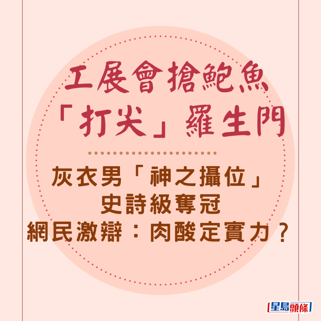 工展會搶鮑魚「打尖」羅生門 灰衣男「神之攝位」史詩級奪冠 網民激辯:肉酸定實力?↓↓↓↓
