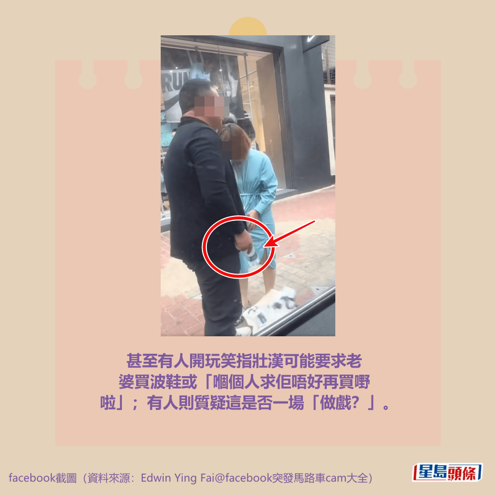 由於影片沒有交代事件起因,網民於是諸多揣測。有人認為壯漢「搏懵唔識嘅?」,也有人好奇「即係點啫」;甚至有人開玩笑指壯漢可能要求老婆買波鞋或「嗰個人求佢唔好再買嘢啦」;有人則質疑這是否一場「做戲?」。