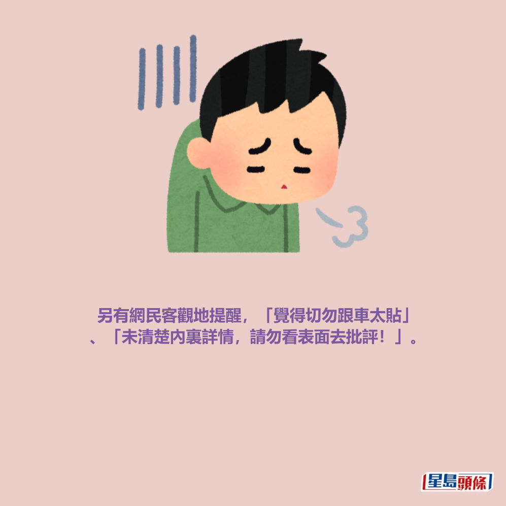 另有網民客觀地提醒,「覺得切勿跟車太貼」、「未清楚內裏詳情,請勿看表面去批評!」。