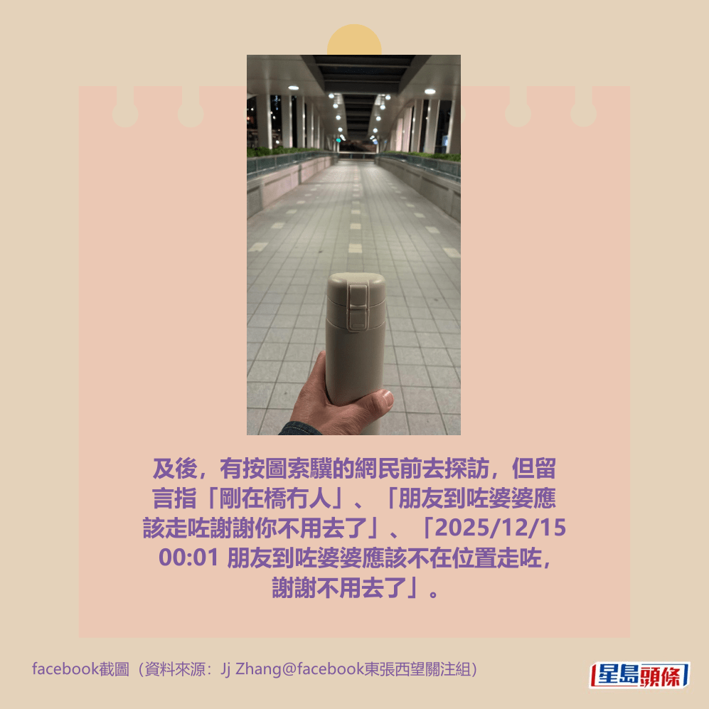 及後,有按圖索驥的網民前去探訪,但留言指「剛在橋冇人」、「朋友到咗婆婆應該走咗謝謝你不用去了」、「2025/12/15 00:01 朋友到咗婆婆應該不在位置走咗,謝謝不用去了」。