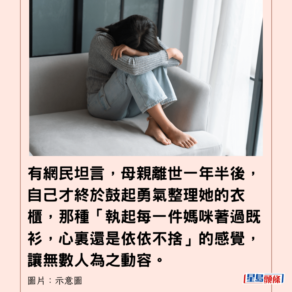 有網民坦言,母親離世一年半後,自己才終於鼓起勇氣整理她的衣櫃,那種「執起每一件媽咪著過既衫,心裏還是依依不捨」的感覺,讓無數人為之動容。