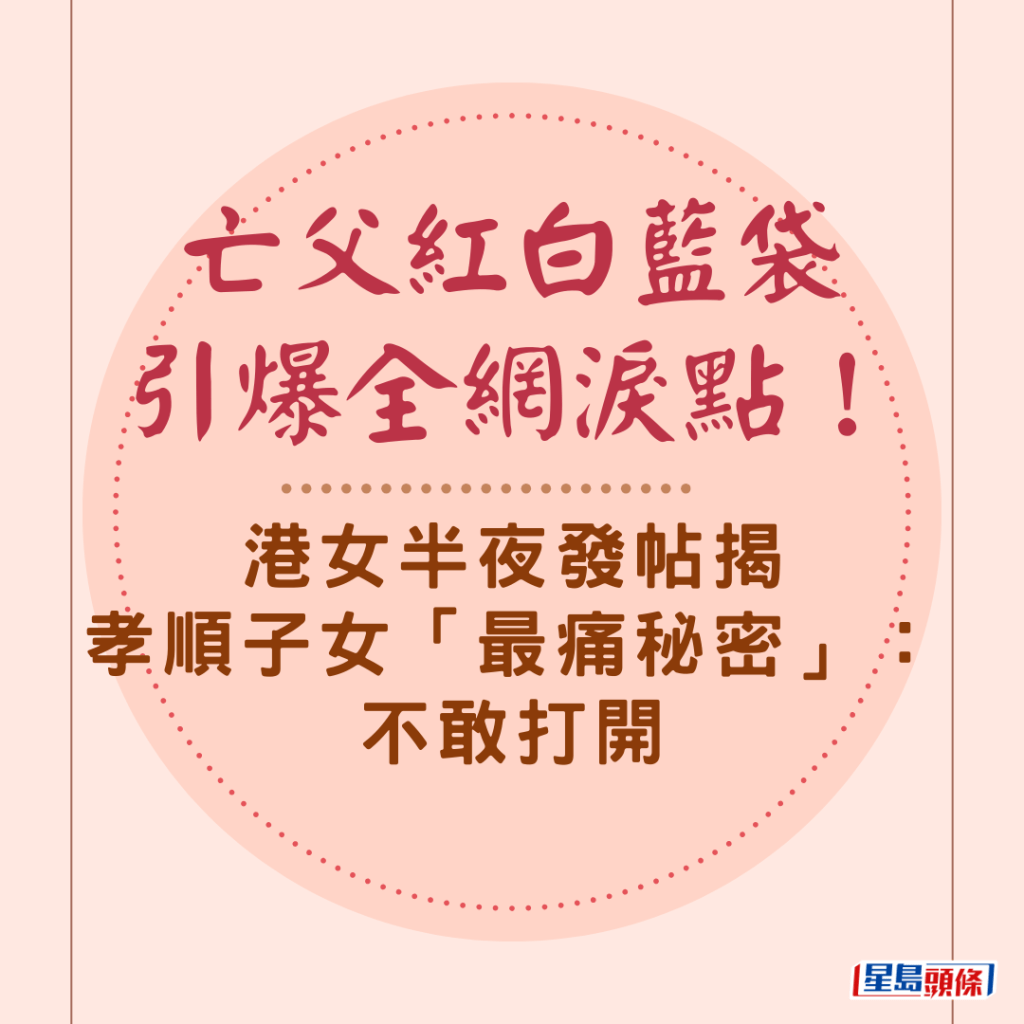 亡父紅白藍袋引爆全網淚點!港女半夜發帖揭孝順子女「最痛秘密」:不敢打開↓↓↓↓