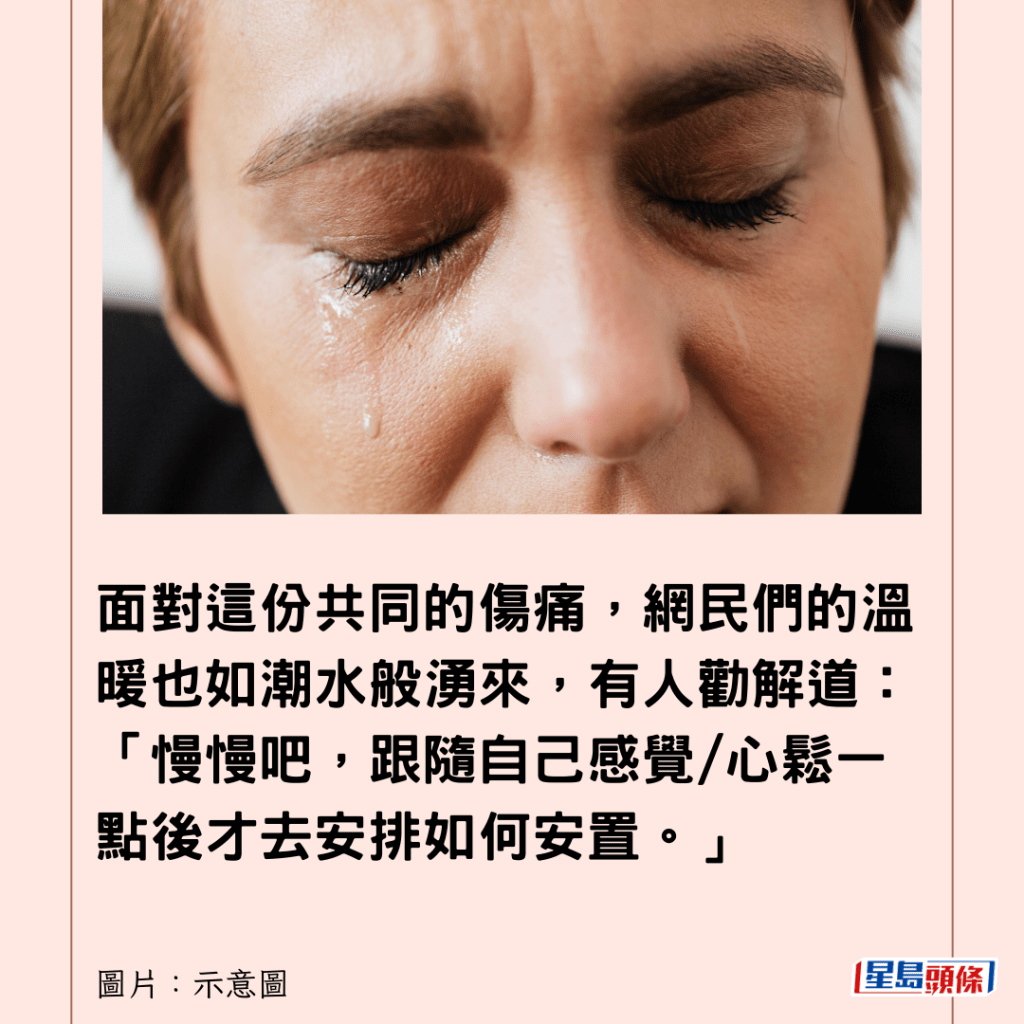 面對這份共同的傷痛,網民們的溫暖也如潮水般湧來,有人勸解道:「慢慢吧,跟隨自己感覺/心鬆一點後才去安排如何安置。」
