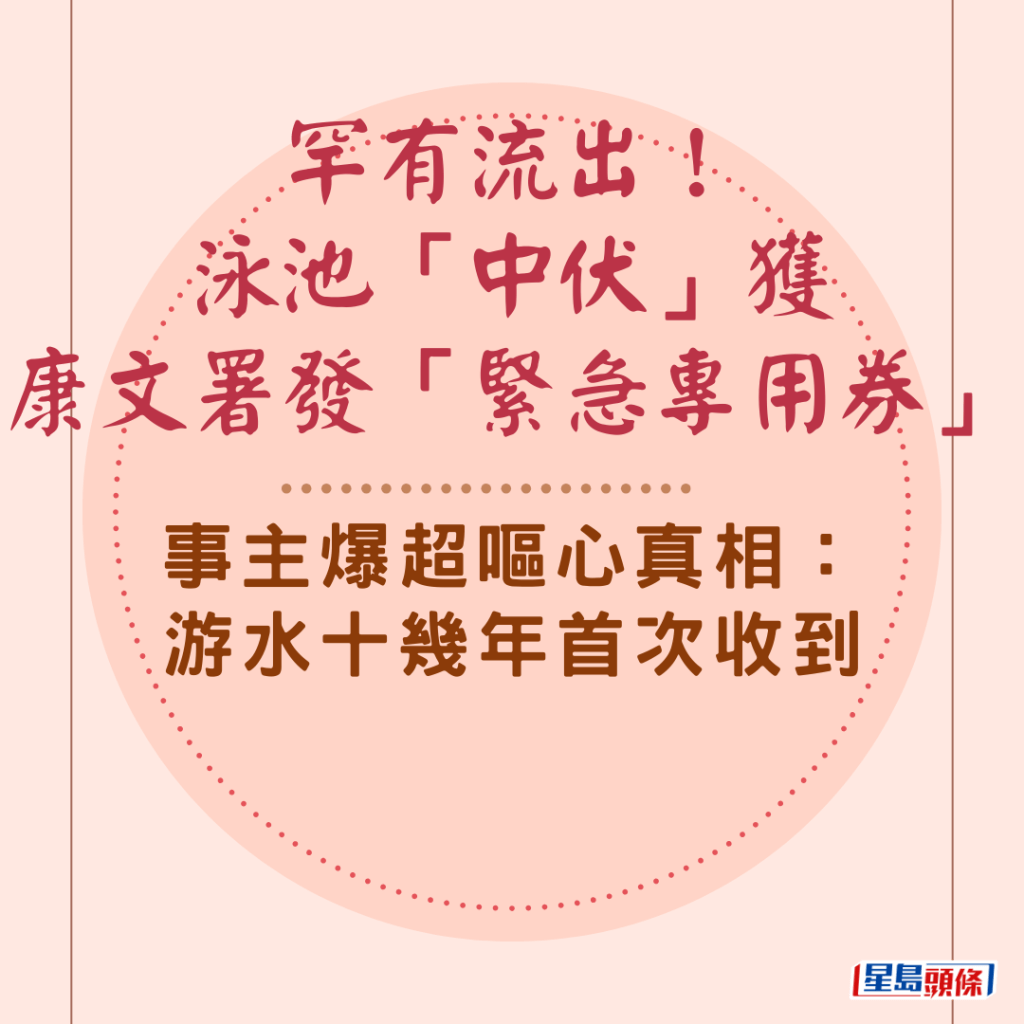 罕有流出!泳池「中伏」獲康文署發「緊急專用券」 事主爆超嘔心真相:游水十幾年首次收到↓↓↓↓