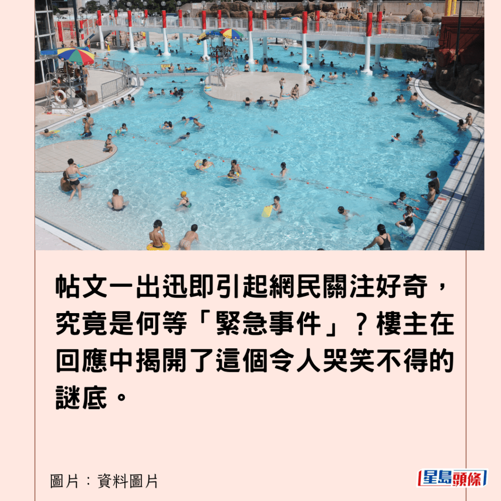 帖文一出迅即引起網民關注好奇,究竟是何等「緊急事件」?樓主在回應中揭開了這個令人哭笑不得的謎底。當有網民猜測「通常有人瀨屎」時,樓主坦白回覆:「你估中了」,並補充當時情況是「游游下泳池有污糟嘢」。原來,他遇上了泳池最令人聞之色變的「啡色警報」,即有人在池中排泄,導致泳池需要緊急關閉。樓主透露,事件發生在顯徑游泳池。