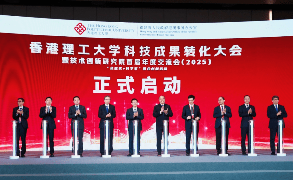 理大校長滕錦光表示,理大已在內地不同城市建立了12所技術創新研究院,並在深圳設立兩所研究院及一所前沿技術創新中心;現已啟動了9個創業中心,為科研成果轉化與創業人才培養提供堅實支撐。每所研究院均聚焦若干特定領域,精準對接當地產業與社會發展需求,推動理大科研成果落地轉化與應用。他期待推動更多高水平的科技成果落地生根,實現互利共贏、協同發展,為建設科技強國、推進高質量發展作出更大的貢獻。